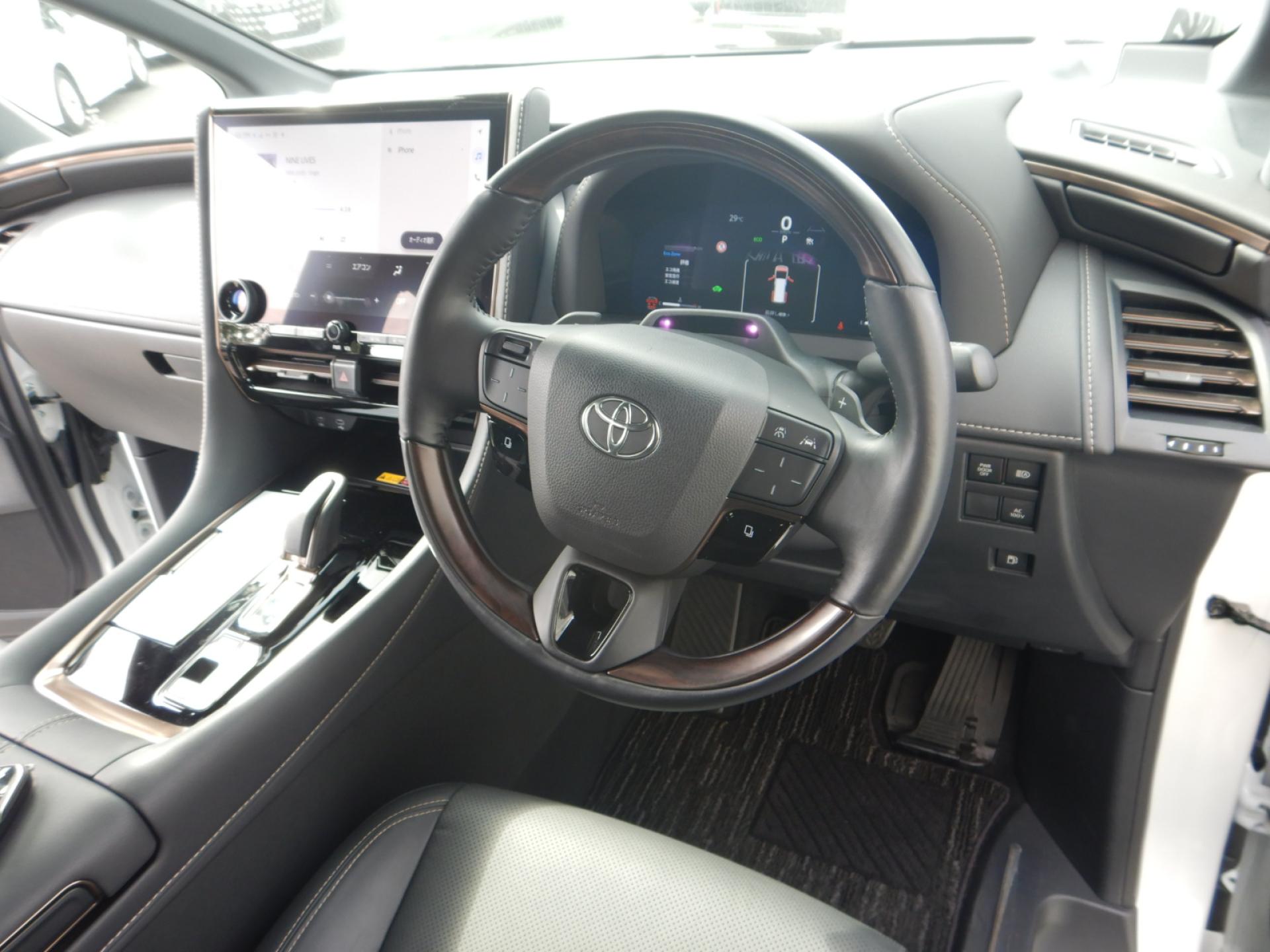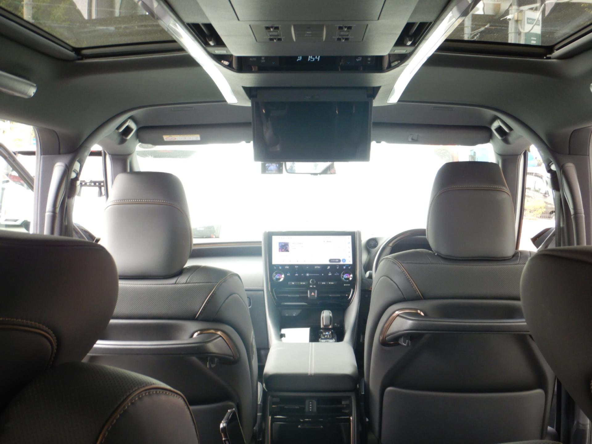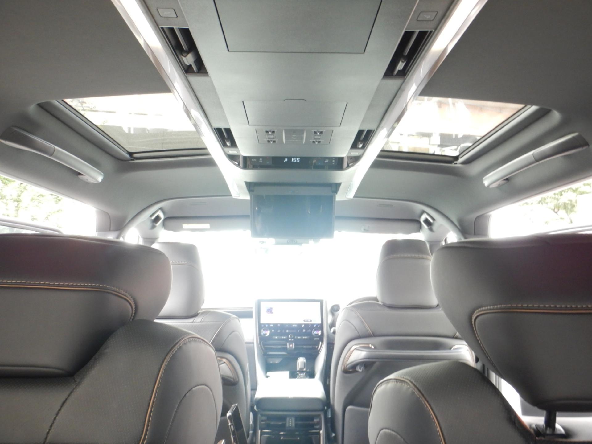 13.2型有機EL後席ディスプレイ、合成皮革エグゼクティブパワーシート、左右独立ムーンルーフ、トヨタチームメイト、カラーヘッドアップディスプレイ、ユニバーサルステップ、3眼LEDヘッドライト、シーケンシャルターンランプ、デジタルインナーミラー、ブラインドスポットモニター、両側パワースライドドア、パワーバックドア、ナビ連動ビルトインETC(2,0)付きのお車です。