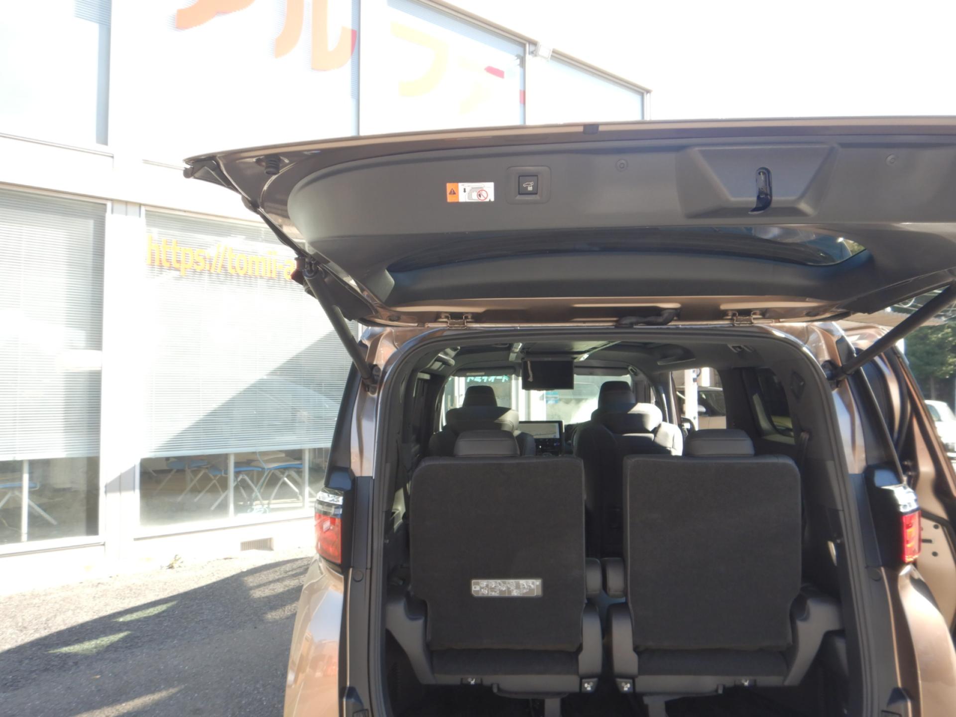 13.2型有機EL後席ディスプレイ、合成皮革エグゼクティブパワーシート、左右独立ムーンルーフ、ユニバーサルステップ、3眼LEDヘッドライト、シーケンシャルターンランプ、デジタルインナーミラー、ブラインドスポットモニター、両側パワースライドドア、パワーバックドア、ナビ連動ビルトインETC(2,0)付きのお車です。